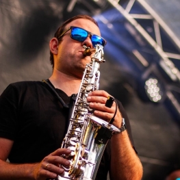 Ik ben Matthijs en speel verschillende blaasinstrumenten, waaronder sopraan- en altsaxofoon, evenals bas- en besklarinet. Er is niets heerlijker dan aan het einde van de werkdag letterlijk de stress van me af blazen! In de band speel ik altsaxofoon en af en toe ook enkele bijzondere toeters op een elektronisch blaasinstrument.